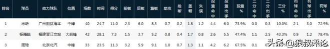 最为值得外界关注的是杨曦皓作为4号位球员,场均可以交出1.7次封盖,力压周琦位居本土第二。第一是2米26身高的广州内线球员徐昕。